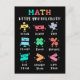Playful math artwork with plus, minus, times, divide, equals, percent, greater than, less than and not equal. A friendly learning themed layout that shows how math concepts stay in balance. Great for teachers and students.
