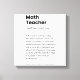 Math Teacher Definition, Math Teacher Appreciation Canvas Print