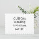 For the full and expending range of customisable wedding product templates, visit http://www.personalizedweddingessentials.com. Custom Personalised MATTE Wedding Invitations - 7" x 5" - SCALLOPED EDGES. The most popular paper choice, Matte’s eggshell texture is soft to the touch with a smooth finish that provides the perfect backdrop for your chosen designs. 120lb, 17 point thick card. MADE IN THE USA. Big bulk buy multi purchase discount savings on invitation cards, up to 50% off your purchases for multiple item orders. Zazzle Wedding Invitations - Create, make, design your own custom wedding invites from this fully customisable, personalised Zazzle invitation card design template blank. High quality, full-colour, full-bleed printing on both sides with Standard or HIGH-DEFINITION print options. Size Options: 5" x 7", 4.25" x 5.5", 3.5" x 5", 4" x 9.25", 5.25" x 5.25", 4.5" x 6.25", 5.5" x 7.5", 6.5" x 8.75”. Orientation Options: Vertical (portrait) or horizontal (landscape). Finish Options: Semi-gloss, Matte, Ultra-thick, Laid, Linen, Columned, Felt White, Felt Ecru, Kraft, Pearl Shimmer, Champagne Shimmer & Metallic Silver. Card Shape & Style Options: Standard or Rounded Corners (all sizes); Bracket, Scalloped, Ticket or Tag (5” x 7” only); Circular (5.25” only). Standard white envelopes included, with upgrade options. Perfect for wedding invites, bachelorette, bridal shower, rehearsal dinner, save the date etc, and for any RSVP party invitations, such as anniversary, birthday, sweet sixteen and Quincenera; or for corporate event & exhibition invites - for photo, image, text, bride & groom, or your own unique personalised design creation.