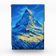 This digital artwork captures the majestic Matterhorn, a iconic alpine peak straddling the Swiss-Italian border. Rendered in a vibrant, impressionistic style, the painting emphasizes the mountain’s grandeur through a dynamic interplay of light and colour. The summit glows with golden-yellow hues.