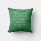 This christian throw pillow has the bible verse Matthew 11:28 to help comfort and give encouragement to those seeking strength in an elegant font against a green background.