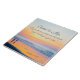 Inspirational scripture ceramic tile depicts a beautiful yellow, orange and blue ocean sunset. It features Bible Verses Matthew 11:28, in the words of Jesus, “Come to me, all you who are weary and burdened and I will give you rest."-