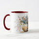 Christian inspirational quote scripture coffee mug depicts a beautiful Boho floral vase. It features Bible Verse Matthew 11:28, Jesus said, “Come to me all who are weary and burdened, I will give you rest."
