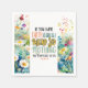 Paper napkins with inspirational quote Christian scripture features a portion of Bible Verse Matthew 17:20, in the words of Jesus, "If you have faith as small as a mustard seed, nothing will be impossible for you.” It is framed with beautiful floral watercolor art including simple white, pink and yellow wild flowers on a blue background.