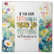 Ceramic tile with inspirational quote Christian scripture features a portion of Bible Verse Matthew 17:20, in the words of Jesus, "If you have faith as small as a mustard seed, nothing will be impossible for you.” It is framed with beautiful floral watercolor art including simple white, pink and yellow wild flowers on a blue background.