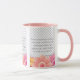 This two-tone mug has a the seasons light print font with black letters showcasing the "Matthew 18:21" KJV bible scripture verse over a picture displaying a collection of cartoon like coloured flowers with different shades of pink in a upclose view with this colourful theme. This verse is referencing the Book Of Matthew 18th chapter showing the 21st verse in this bible scripture quote theme from the King James bible. The rim & handle are glazed in matching colours available in 11-ounce or 15-ounce sizes microwave and dishwasher safe ceramic construction.