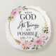 Matthew 19:26 Possible with God Pink Floral Round Cushion