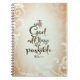 Inspirational Christian scripture notebook, journal depicts a light blue and brown vintage abstract background. It features Bible Verse Matthew 19:26, "With God all things are possible."