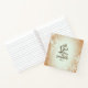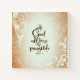 Inspirational Christian scripture notebook, journal depicts a light blue and brown vintage abstract background. It features Bible Verse Matthew 19:26, "With God all things are possible."