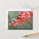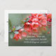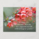 Inspirational scripture postcard depicts a nature photograph with a branch of beautiful pink flowers and green leaves. It features Bible Verse Matthew 19:26, Jesus said, “With man this is impossible, but with GOD all things are possible.” _