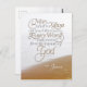 Inspirational scripture postcard depicts a sandy ocean beach. It features Bible Verse Matthew 4:4 in the words of Jesus, "Man shall not live on bread alone, but on every word that comes from the mouth of God."