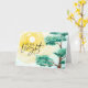 Greeting card with Christian inspirational quote scripture depicts a simple watercolor background with a tree, blue skies and a yellow sun shinning. It features Bible Verse Matthew 5:16, "Let your light shine." The entire scripture is quoted inside the card, "You are the light of the world. A town built on a hill cannot be hidden. Neither do people light a lamp and put it under a bowl. Instead they put it on its stand, and it gives light to everyone in the house. In the same way, let your light shine before others, that they may see your good deeds and glorify your Father in heaven."