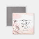 Inspirational quote scripture magnet depicts simple hand drawn flowers on a blush pink abstract background. It features a portion of the Beatitudes, Jesus' beloved teaching from the Sermon on the Mount, Bible Verse Matthew 5:7, "Blessed are the merciful, for they will be shown mercy."