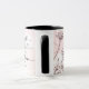 Inspirational quote scripture coffee mug depicts simple hand drawn flowers on a blush pink abstract background. It features a portion of the Beatitudes, Jesus' beloved teaching from the Sermon on the Mount, Bible Verse Matthew 5:7, "Blessed are the merciful, for they will be shown mercy."