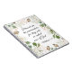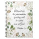 Christian inspirational quote scripture notebook, journal depicts a simple floral design with white and red berries and greenery. It features a portion of the Beatitudes, Jesus' beloved teaching from the Sermon on the Mount, Bible Verse Matthew 5:9, "Blessed are the peacemakers, for they will be called children of God."