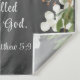 Christian inspirational quote scripture tapestry depicts a simple floral design with white and red berries and greenery on a grey background. It features a portion of the Beatitudes, Jesus' beloved teaching from the Sermon on the Mount, Bible Verse Matthew 5:9, "Blessed are the peacemakers, for they will be called children of God."