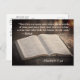 Inspirational quote scripture postcard depicts the Bible sitting on a rock and features Bible Verse Matthew 7:24-25, in Jesus words, "Therefore everyone who hears these words of mine and puts them into practice is like a wise man who built his house on the rock, and the rain descended, the floods came, and the winds blew and beat on that house; and it did not fall, for it was founded on the rock." The back Bible Verse and greeting can be customised._
