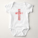 This baby bodysuit is unisex and features a bold print font with two-tone red faded letters displaying the "Matthew 7:7" KJV bible scripture and citation designed in the form of a cross with accents in the bible based theme. This bodysuit is standard fit with easy tear label plus easy on-and-off three snap closure and double-needle ribbed binding on all openings.