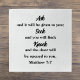 Bible verse puzzles are a great form of Christian meditation, focusing the mind and body on a specific Jesus quote or thought. This minimalist Christian puzzle shows a favourite Scripture passage of Matthew 7:7, the famous ask seek knock Bible verse. It is elegantly written in two fonts that are easy to customise in the Design Tool in the Edit This button on page. It's easy to personalise by changing the fonts, colour, or background colour to make it uniquely yours. "Ask and it will be given to you; seek and you will find; knock and the door will be opened to you."
