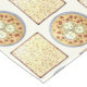 Design features an original illustration of matzah flatbreads and a bowl of matzah ball soup, two staples of Jewish cuisine during the Passover holiday.