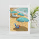 Beautiful Teal Beach Umbrellas at Kapalua Bay Beach, Maui adorn this blank greeting card.