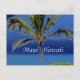This artistic photograph of a palm tree against the blue sky and ocean was taken on the beach in beautiful Maui, Hawaii. Pretty tropical postcards for Hawaiian travel.