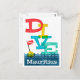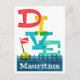Colourful Mauritius scuba design. Retro typography in inkpress style with the word "Dive", along with a scuba flag floating in the ocean.
