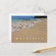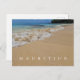 A close up photograph of the shoreline on a beach in Mauritius printed on a postcard.