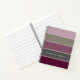 Mauve, Green, and Bordeaux Dramatic Wide Stripes Personalised Feminine Notebook... Our elegant, eye-catching notebook features wide stripes in pastel shades of mauve and green and rich bordeaux separated by narrow light rose gold stripes. You can personalise this notebook with your name or a notebook title. The text can be easily revised on the personalisation template.