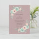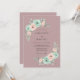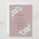 This design features a soft mauve background adorned with delicate watercolor floral arrangements. Elegant mint green and blush pink ranunculus blooms are paired with silver-grey eucalyptus leaves for a serene, romantic feel. The artistic composition creates a sophisticated style perfect for a seasonal event.