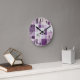 A modern wall clock with a chequered tile pattern with a subtle watercolor effect in mauve, purple and lilac colours. The numbers are a separate file and can be deleted if you do not need them. And you can also customise or delete the monogram text.