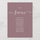 These elegant mauve signature script double-sided table number seating chart cards are perfect for all celebrations. Designed by Thisisnotme©
