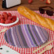 Mauve diagonal stripes paper plate