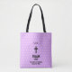Mauve purple diamond geometric pattern Christian tote bag, featuring a cross. You can customise the text, including your own initials (or name if you prefer), your favourite book of the Bible, the chapter and verse, and you can include a short quote from the verse - or simply delete the quotation if you like to keep the design as just a simple book-chapter-verse style.