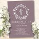 Beautiful Confirmation invitations featuring a delicate floral wreath and cross set on a mauve background. Flip our invitation over to view a coordinating back for an extra special touch. Visit our shop to view our entire religious collection.