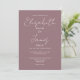 This mauve minimalist elegant script wedding invitation can be personalised with your information in chic typography and special photo on the reverse. Designed by Thisisnotme©