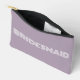 Solid mauve colour, small style, zippered cosmetic bag for your wedding bridesmaid that features the word, BRIDESMAID in large, modern typography on one side of bag. Perfect as a travel accessory pouch to hold makeup, perfume, and jewellery. You may personalise by adding bridesmaid name if desired to pouch. Available in many, popular bridesmaid wedding colour schemes.