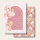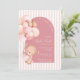 Celebrate your little girl's arrival with this Teddy Blooms & Golden Dreams baby shower invitation! Featuring a charming watercolor design, this invitation showcases a cute girl teddy bear holding a bouquet of pastel pink and brown balloons, framed by a soft arch backdrop with elegant pink stripes and mauve floral accents. The golden brown swirl details add a touch of warmth and sophistication, making it perfect for a modern and feminine baby shower. Available as a printable or digital file, this invitation coordinates beautifully with matching tableware, signs, favours, and thank you cards for a fully styled celebration.