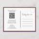 Elegant Mauve QR Code All In One Modern Script Simple Minimalist Wedding Invitation Postcard. Celebrate your special day with this elegant and beautiful wedding invitation card to beautify your special occasion. All the texts are pre-arranged for you to personalise easily and quickly with your own details. If you need further customisation or matching items, please email alldaybreakfastzazzle@gmail.com – we would love to help.