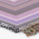 A quality printed throw has its advantages. This is a much finer weave throw than its loopier cousins, and though lighter, it is worth the investment for custom room accessorizing. The back is much prettier than the typical brown, and the fringe on the long sides very vivid, the selvage nicely done. Before photographing, I washed the throw in cold water, delicate, with a thicker woven throw the same size. On tumble dry low, this throw was dry in half the time as the other. This is a very practical quality if you use throws for furniture covers or to wrap up in frequently. The sleekness of the fabric makes it a great layer for accenting or protecting without the feeling of sitting on too much stuff. Perfect for napping or when you feel a light chill coming on. The color printing is beautiful and on this fabric, matched the design and color of my Photoshop image. This is an advantage for blending room fabrics and colors. The fringe on the short sides prints the colors from the design image and therefore varies from the side fringe. I streaked a white fractal line through the plaid pattern to give the illusion of weaving. This printed as crisp as an illusory thread, and put some white in the short side fringe, showing another advantage of print vs loomed- for artistic purposes, line lines, detail, and color integrity can be planned and preserved. My loomed throws have color limitations and more of a needlepoint texture. Print throws reproduce an exact image. The throw felt a little stiff straight out of the package, but this went away in the first delicate wash. Of course I searched the wash water for ink or bleeding and there was none.