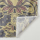 This tapestry features crows, dragonflies, and beetles surrounded by flowers and leaves in shades of mauve and grey on a tan background.