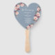 Dusty Blue with Blush Pink Flowers Watercolor. Floral Wedding Ceremony Program Heart Shap Hand Fan.