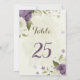 mauve white flowers greenery table number card