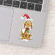 This adorable illustration features Max the Dog sitting patiently, fully embodying the holiday spirit—even if he looks slightly confused by it all! He is dressed in a floppy red Santa hat and a chunky red collar, which is charmingly adorned with a green Christmas ornament. Max's classic, expressive eyes and loyal posture make this image the perfect, heartwarming graphic for anyone who loves the true hero of the Grinch story!