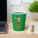 This adorable illustration features Max the Dog sitting patiently, fully embodying the holiday spirit—even if he looks slightly confused by it all! He is dressed in a floppy red Santa hat and a chunky red collar, which is charmingly adorned with a green Christmas ornament. Max's classic, expressive eyes and loyal posture make this image the perfect, heartwarming graphic for anyone who loves the true hero of the Grinch story!