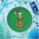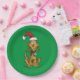 This adorable illustration features Max the Dog sitting patiently, fully embodying the holiday spirit—even if he looks slightly confused by it all! He is dressed in a floppy red Santa hat and a chunky red collar, which is charmingly adorned with a green Christmas ornament. Max's classic, expressive eyes and loyal posture make this image the perfect, heartwarming graphic for anyone who loves the true hero of the Grinch story!