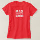Proud to be American patriotic red MaxForMayor tee shirt for women.