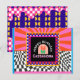 Maximalism Birthday Colourful Chequered Floral Postcard