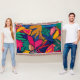 This floral bright colour maximalist design features colourful designs in blue , pink, red, orange, green and yellow.A perfect colourful abstract flowers winter blanket for your maximalism style home decor.