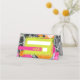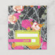 Neon yellow rectangle shape over pink orange and peach modern floral with dark marbleised design. "table" text in neon yellow over hot pink bar.